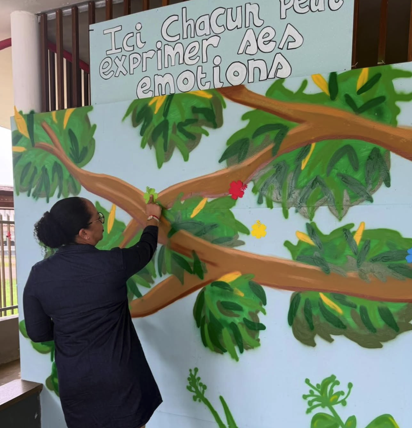 🌸 Et pour clôturer cette manifestation : l’arbre des émotions, cette fois pour les adultes. Chaque personne a choisi une fleur représentant son ressenti et l’a déposée sur une œuvre murale réalisée par un artiste local.